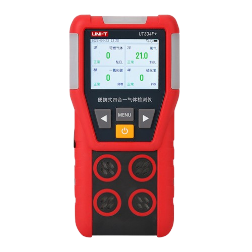 The UNI-T UT334E Plus is a professional 4-in-1 portable gas detector designed to provide reliable and accurate detection of hazardous gases in industrial and commercial environments. Equipped with high-quality sensitive sensors, this advanced instrument monitors oxygen (O₂), carbon monoxide (CO), hydrogen sulfide (H₂S), and combustible gases, ensuring workplace safety and compliance with industrial safety standards.